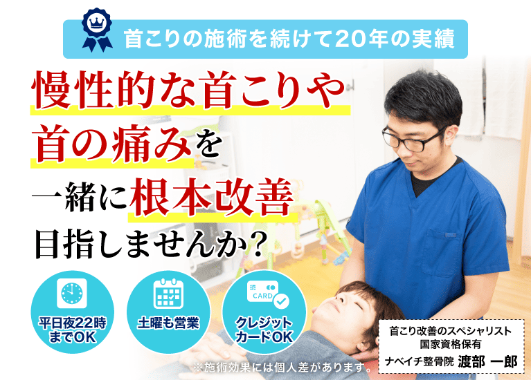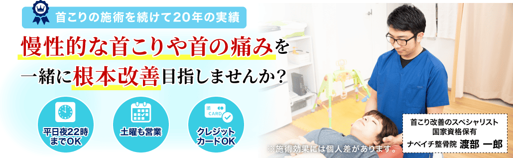 そんな思いから「首こり専門」のナベイチ整骨院を立ち上げました。